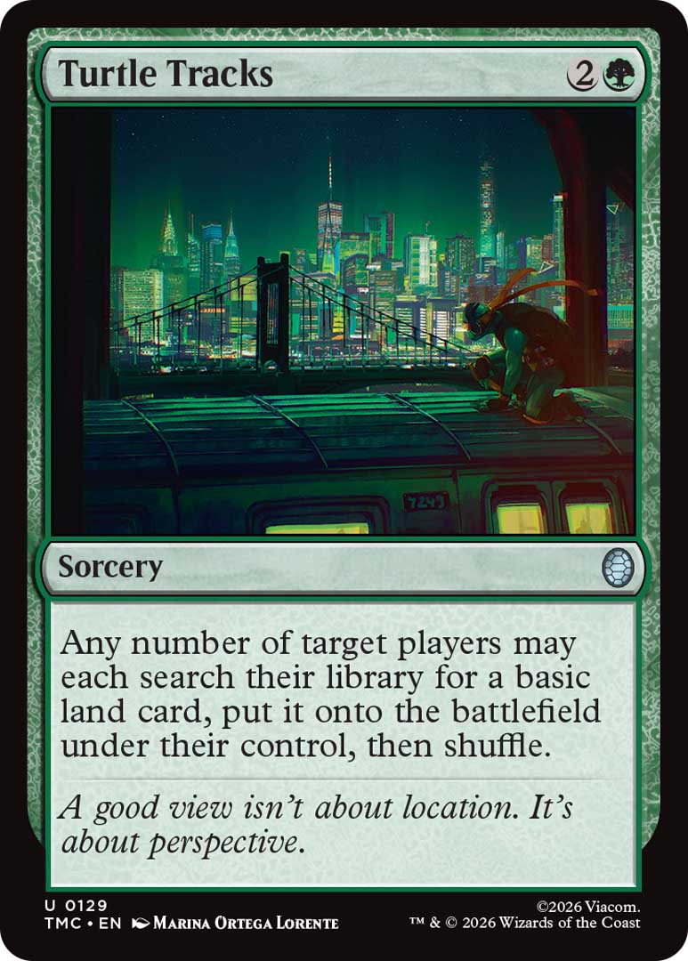“On the design side, we were able to draw inspiration from almost every iteration of the Turtles, like the original comics, video games, animated series, even toys,” said Eric Engehard, WotC Senior Game Designer and TMNT Set Design Lead. “There was a designer who had a favorite character or just a really cool visual from the turtles’ past, a character with a cool visual, we were able to use that character and put them in the set.”